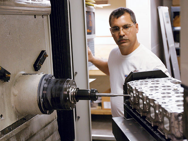 Prior to assembly the cylinder head deck, intake and exhaust surfaces are given a clean up cut to insure flatness.